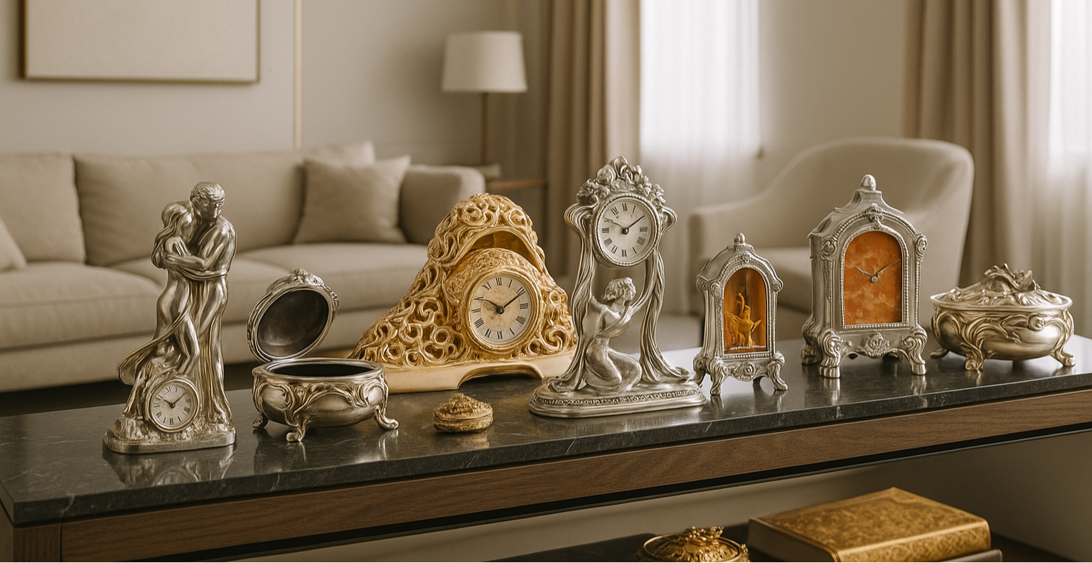 Eros and Psyche Golden Clock - A Timeless Tale of Love and Devotion