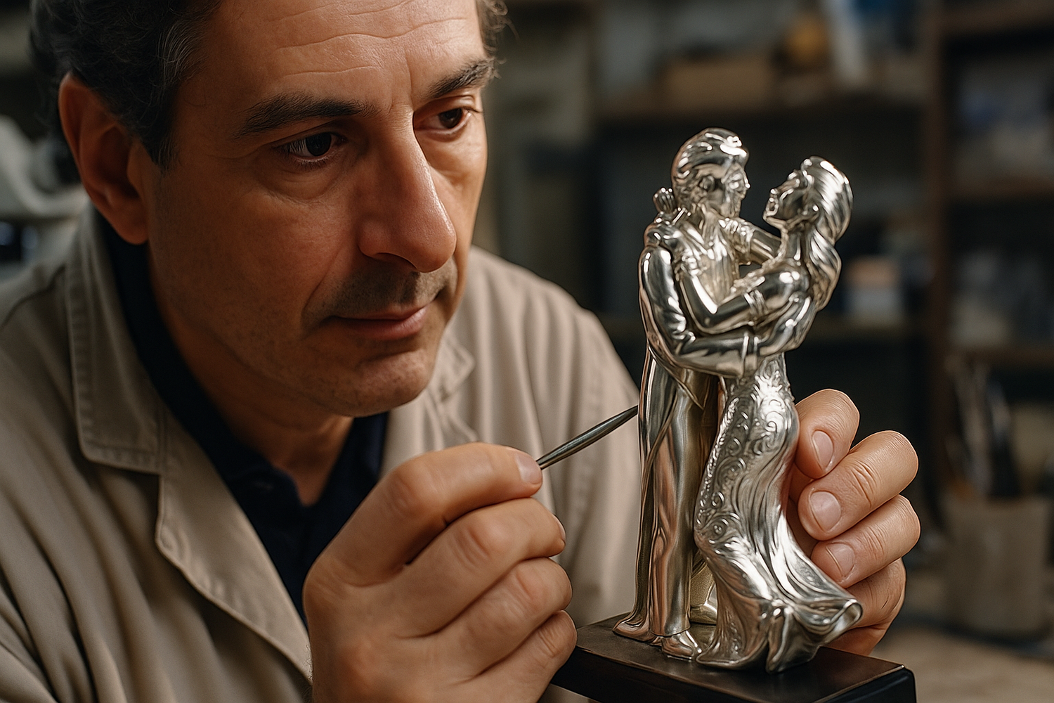 Casket 'Flowers' in Silver Resin Painted with Gold - Elegant Storage with Artistic Charm