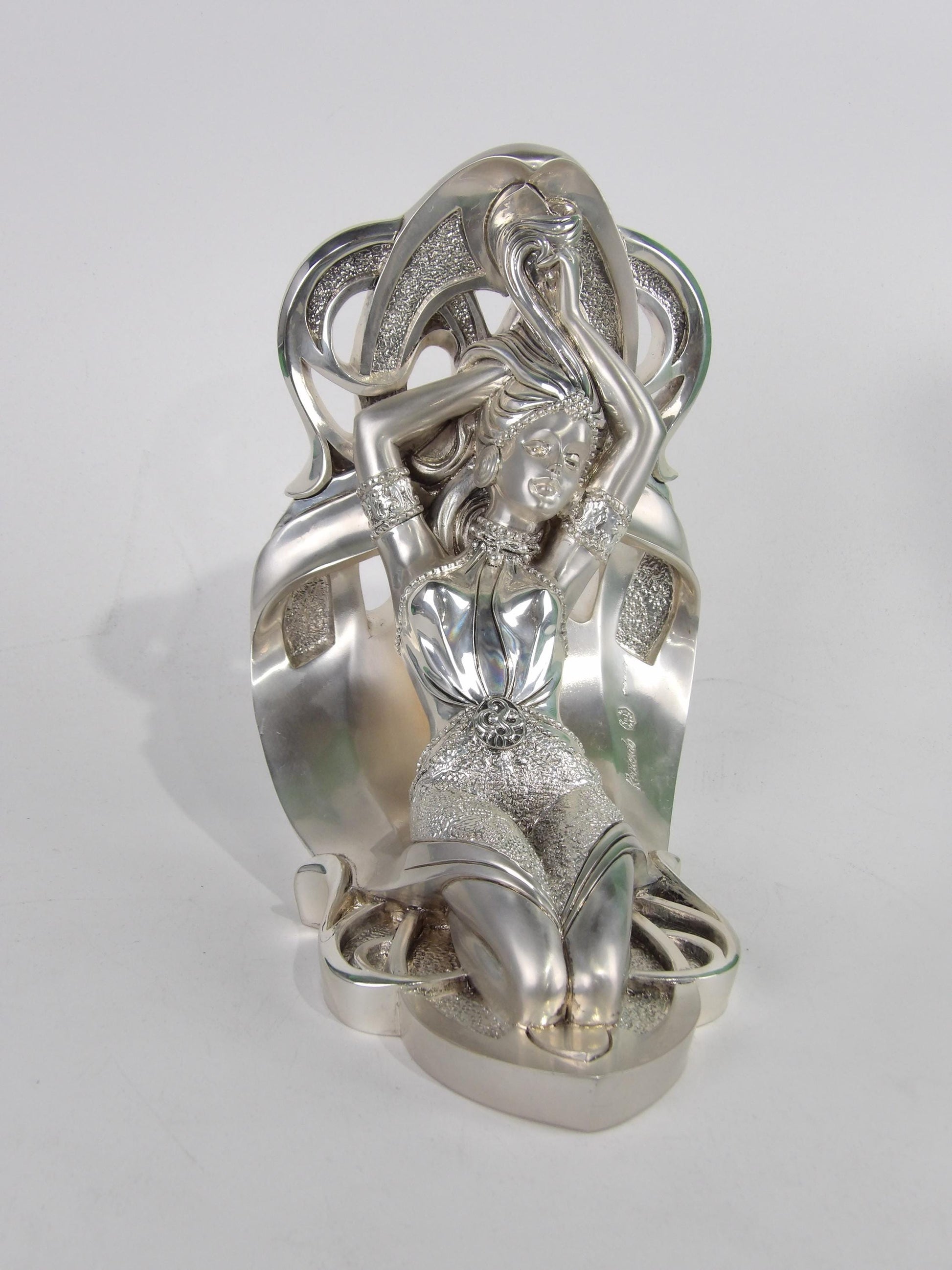 Hechos a mano en Italia por un artesano de Linea Argenti, estos sujetalibros plateados presentan una elegante representación de una mujer. Con su diseño refinado y detalles artísticos, son piezas funcionales y decorativas para cualquier estantería o decoración del hogar.