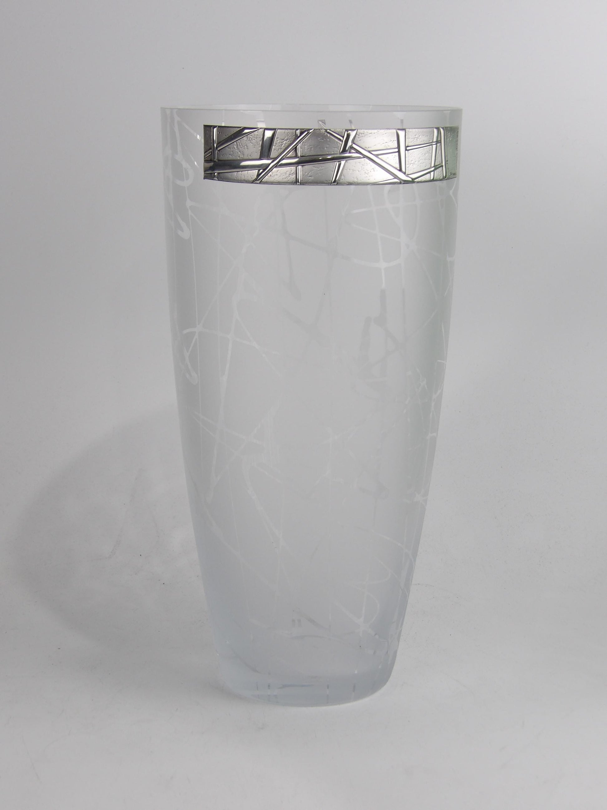 Crystal Vase with Scratched Faded Glass Design and Silver-Coated Bilaminate