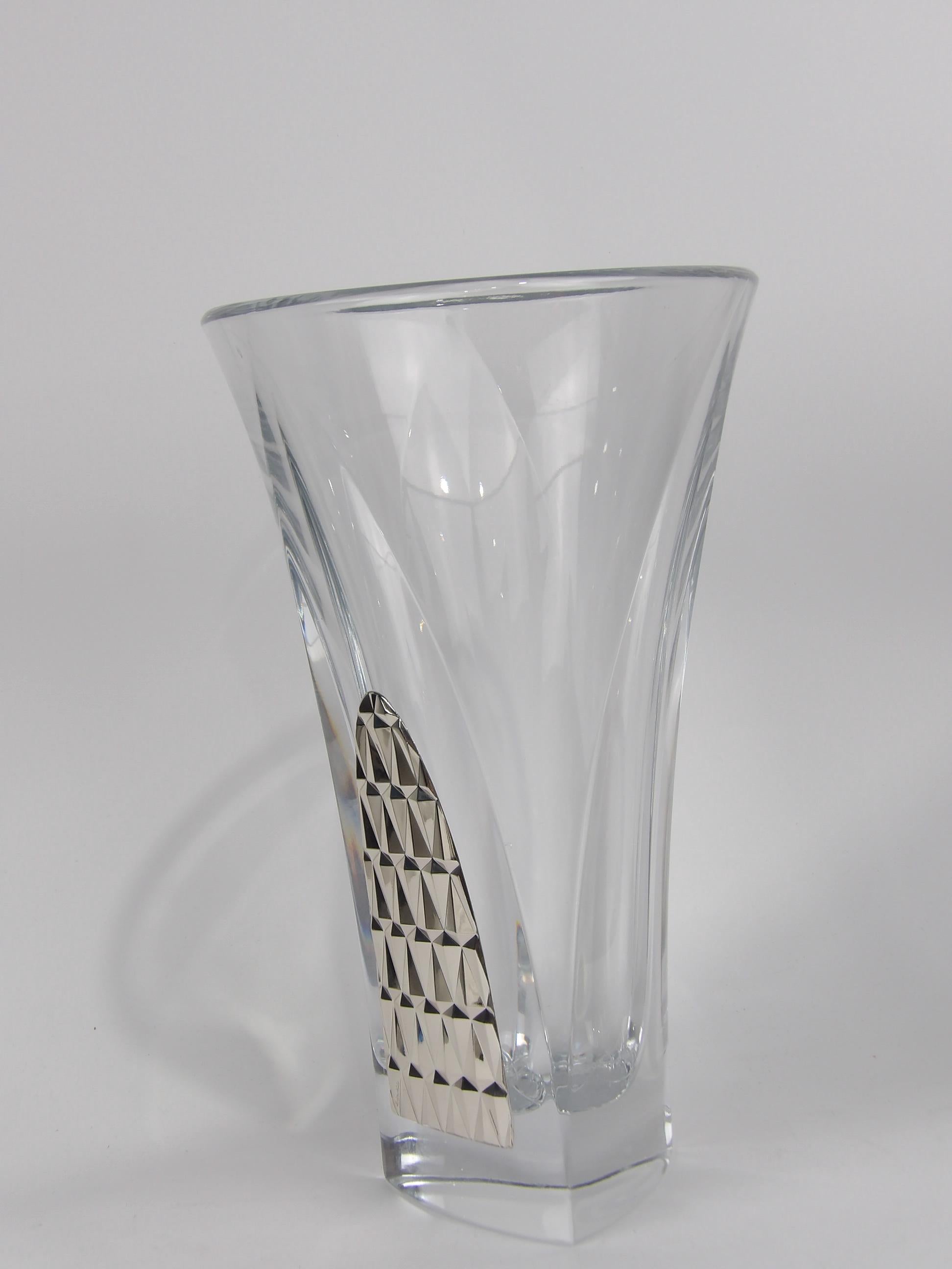 Handmade Crystal Vase with Rhombus Decoration in Silver-Coated Bilaminate